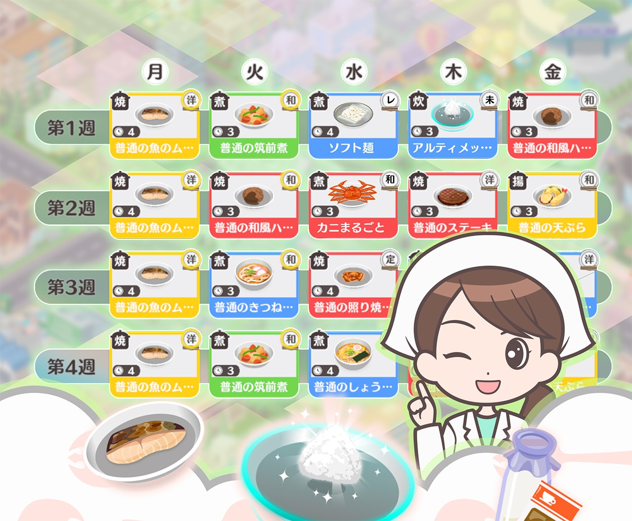 様々なメニューを集めて、オリジナルの献立表を作り上げよう!