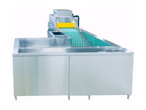 - 連続方式:連続で洗浄機へ送り込み洗浄します。バッチ式と比べ洗浄能力は高いですが大型のためスペースが必要になります。