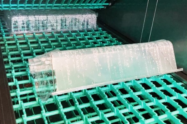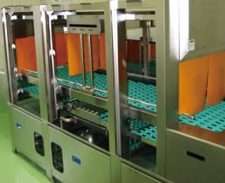 家庭用冷蔵庫の「庫内部品」洗浄機です。リユースにあたって庫内の部品に付着した汚れや臭いを除去し、除滴します。1時間に6台分の自動洗浄が行えます。従来人手で行っている部品洗浄作業の自動化・効率化に貢献できます。