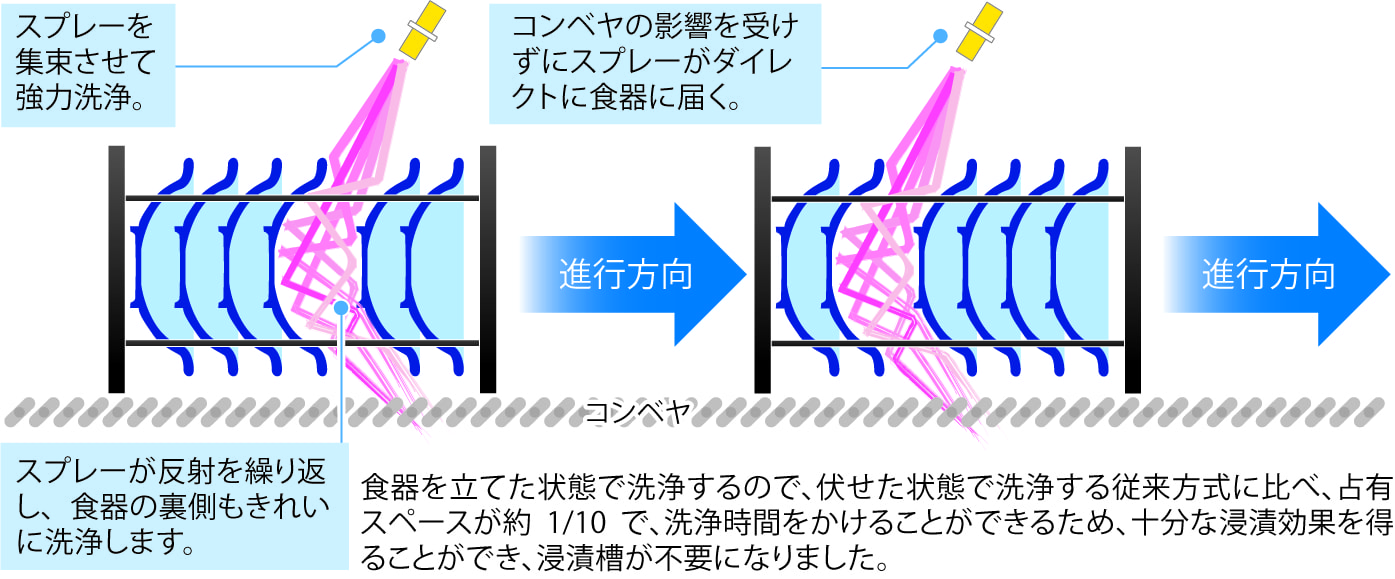 強力な洗浄力と洗浄スペースの圧縮を実現した洗浄方式