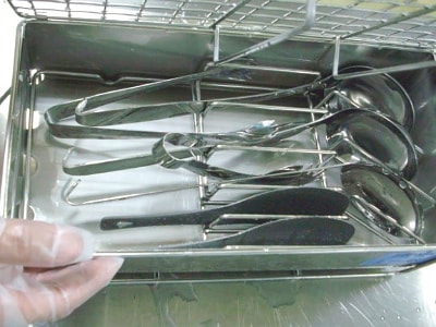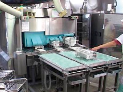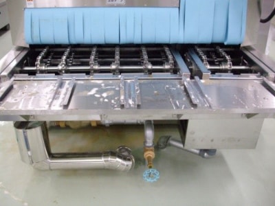 - 返却された食器などは、浸漬せずに洗浄機に流します。
