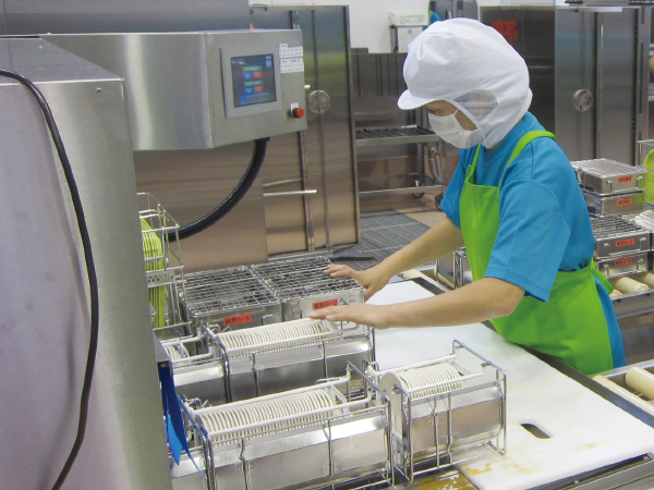 洗浄物の形状に合わせた専用カゴで、食器等をしっかり固定して洗浄します。