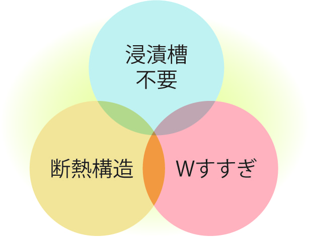 - 浸漬槽がなくなって、その分の水が必要なくなります。